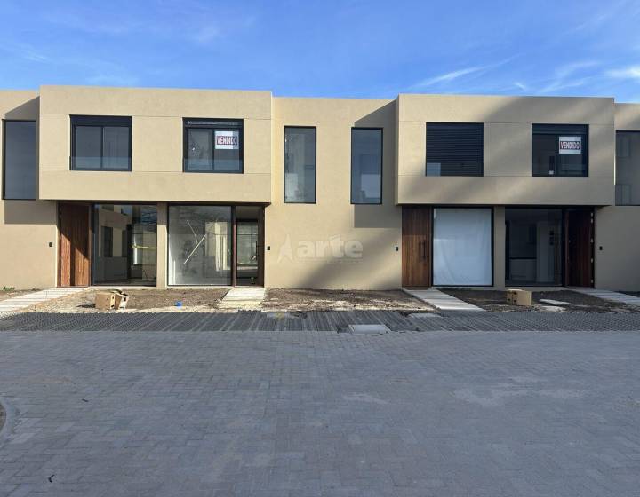 Lindas casas dúplex en un barrio cercado con seguridad permanente. En planta baja se encuentra el living comedor con cocina integrada, toilette y patio con parrillero. En la planta alta se sitúan los dormitorios con placares y el baño principal. Cada casa cuenta con su lugar de cochera asignado y el conjunto cuenta con piscina abierta y salón de usos múltiples. Las cocina se entregan equipadas con horno, anafe y campana, previsión para estufa de alto rendimiento y preinstalación de aire acondicionado.Características de la propiedad