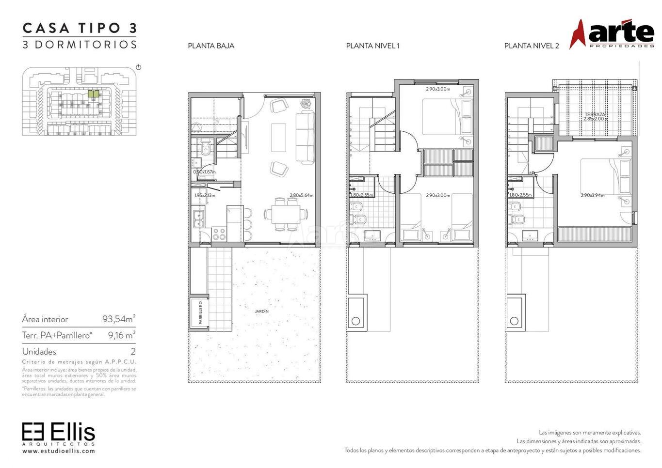 Hermosos Triplex en barrio cercado con seguridad permanente.En planta baja se encuentra el living comedor con cocina semi definida con muy buenos placares, toilette y patio exclusivo con parrillero. En la segunda planta se sitúan los dormitorios secundarios ambos con placares y baño completo.