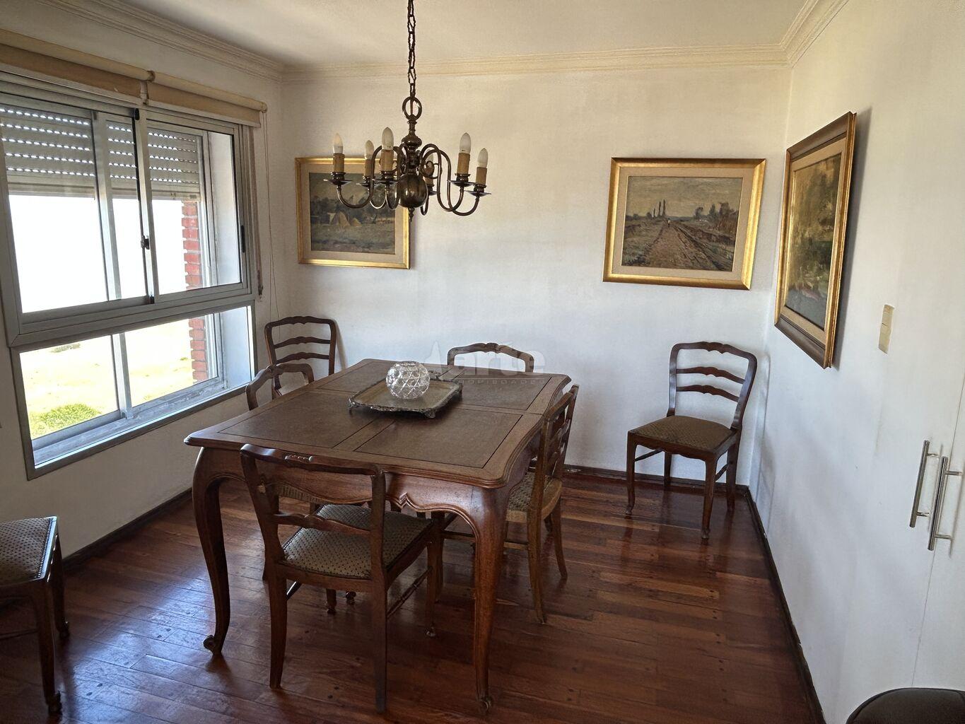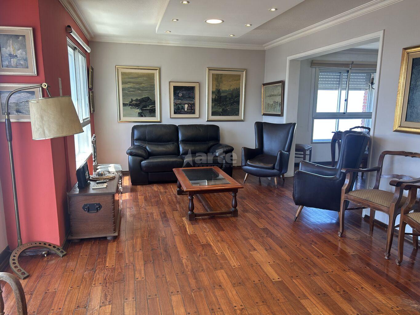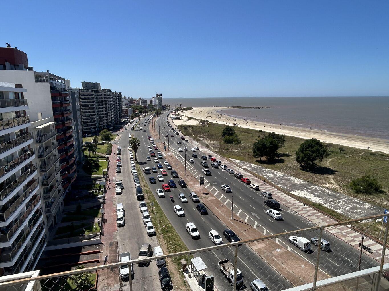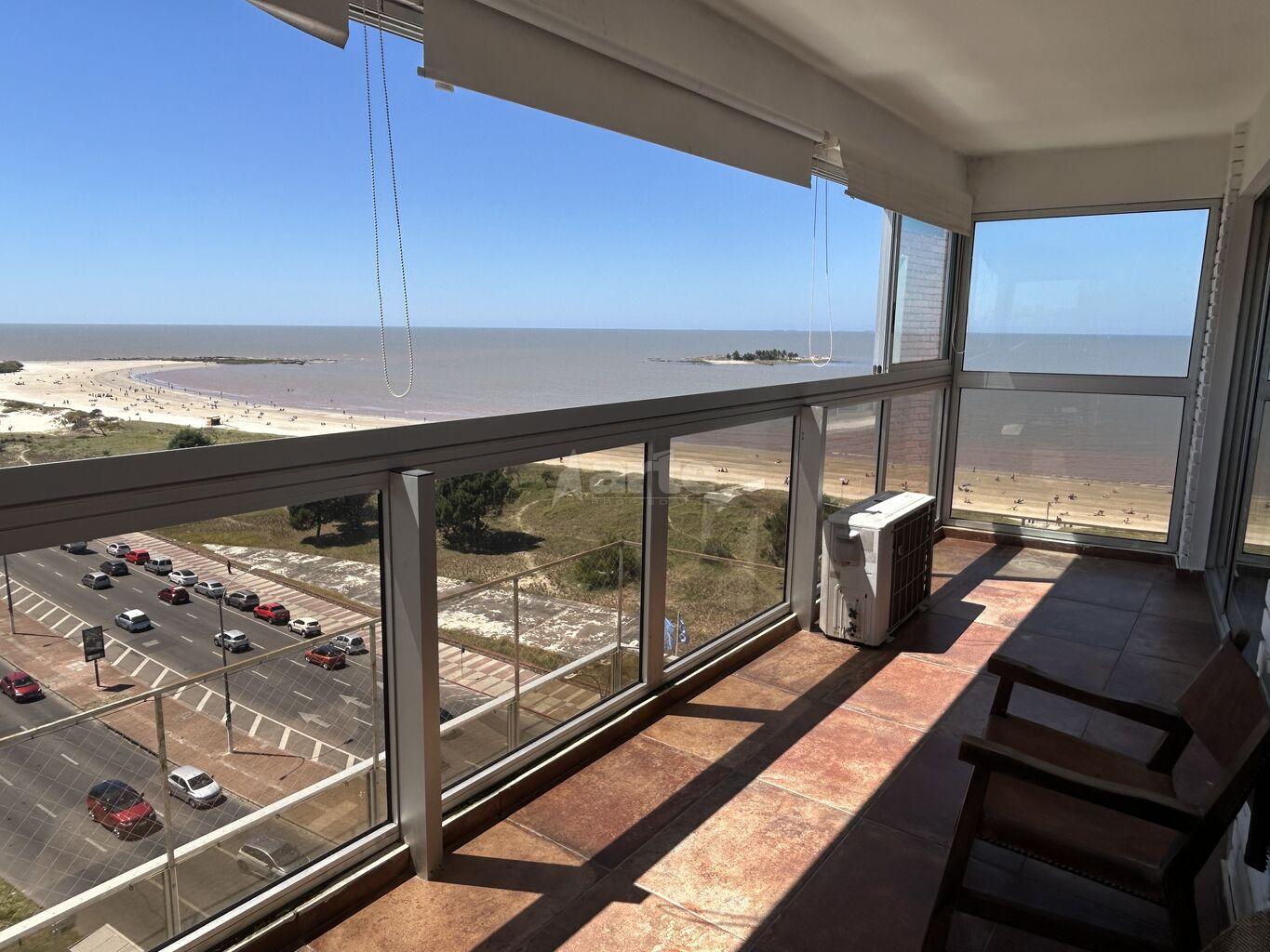 Piso alto con espectacular vista a la bahía de Malvín. Edificio de Pintos Risso en excelente estado, la planta original es de 3 dormitorios que fue modificada y actualmente cuenta con 2 dormitorios, siendo muy sencillo volver a la configuración original. Living comedor orientado al sol de la mañana con toda la vista de la bahía y salida a amplia terraza, actualmente integrado al tercer dormitorio, cocina muy cómoda con amplio lavadero y parrillero, dormitorio principal en suite con buenos placares, segundo dormitorio al contrafrente, baño completo y garaje independiente con entrada directa. El edificio cuenta con videovigilancia, piscina y barbacoa de uso común.Características de la propiedad