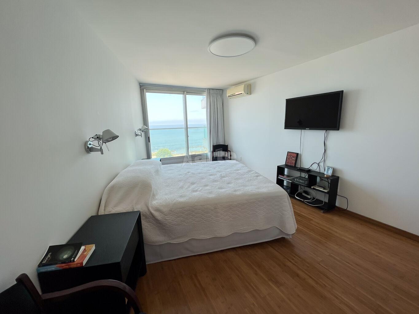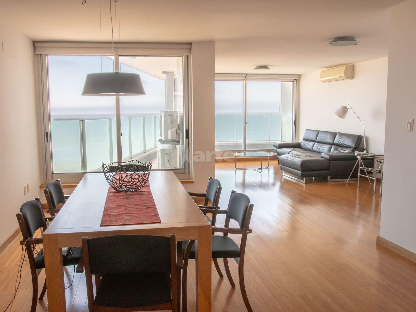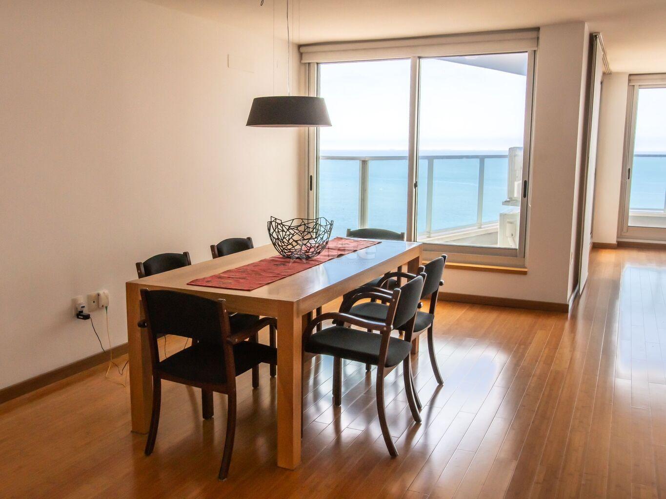 Divino apartamento a la venta frente al mar en uno de los mejores edificios en la Rambla de Malvín.Amplio living comedor con la virtud de ver al mar y recibir el sol del este, rodeado de terrazas. Incluye baño social. La suite mira al mar y tiene un amplio vestidor. Dos dormitorios mirando al contrafrente, ambos con placard, comparten un baño completo.