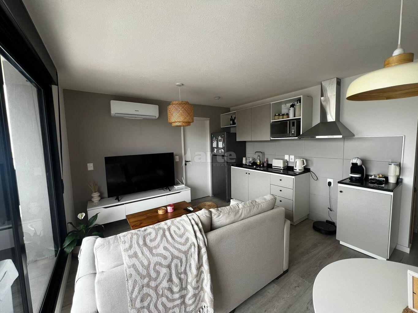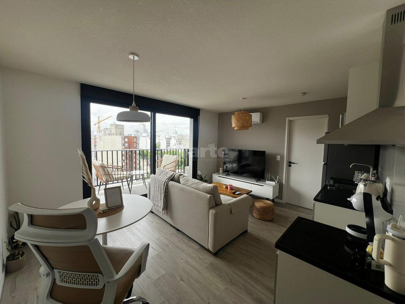 Apartamento en piso alto, con el living apaisado de donde se accede a una gran terraza con la mejor orientación al norte, cocina integrada con buenos muebles bajo y sobre mesada, baño completo muy cómodo, laundry, dormitorio con la misma orientación y vista despejada.Muy agradable Salón de usos múltiples con cocina, parrillero móvil y gran terraza Solárium