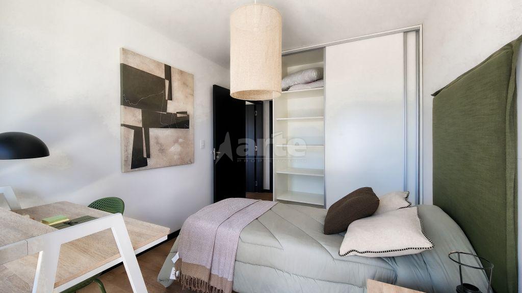 Hermoso apartamento en piso alto con divina terraza que abarca el living y dormitorio. Cocina integrada con placares sobre y bajo mesada y previsión para lavarropas. Living con amplio ventanal hacia la terraza y dormitorio con placard y salida a la terraza.
