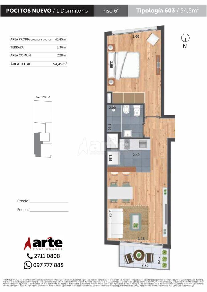En el limite de Parque Batlle y Pocitos Nuevo ( La Mondiola) divina unidad a estrenar con muy buenas terminaciones.Recibidor, muy buen living comedor con gran orientación Norte y salida a hermosa terraza con vista despejadísima. Cocina integrada con barra, muy buen baño completo, dormitorio con buen placard.